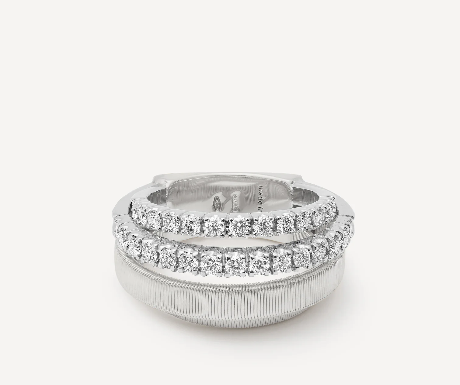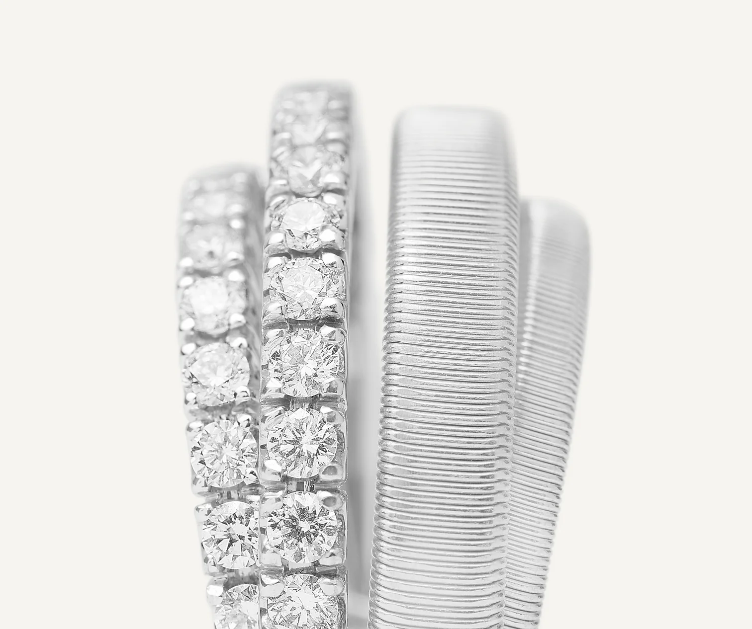 Anello a 4 fili in oro bianco 18kt con 2 fedine in pavé di diamanti