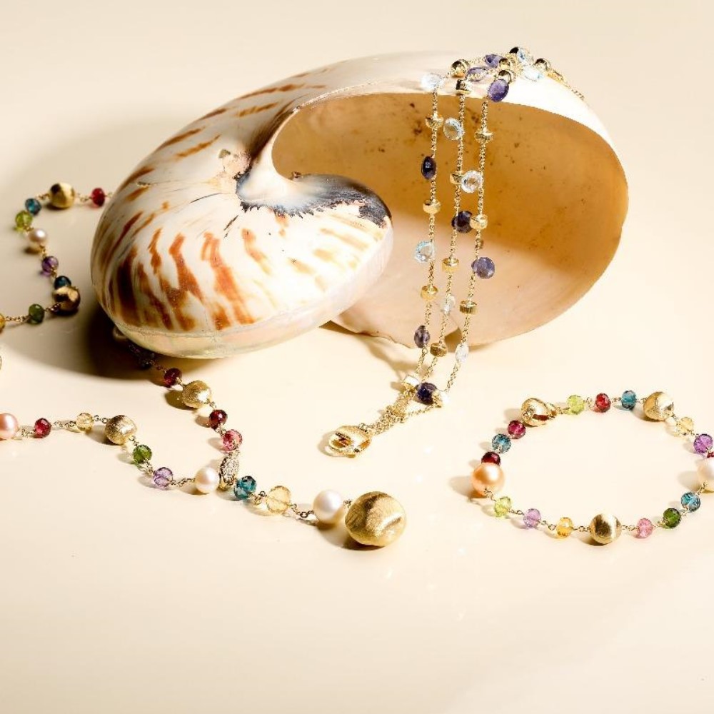 Ispirata ai gioielli tribali e alle morbide dune del Sahara, la Collezione Africa è un’espressione stravagante di bocce dorate di diverse dimensioni e finiture, tutte incise a mano e strutturate singolarmente. Collane, bracciali, orecchini e anelli danno una sensazione audace, ma straordinariamente leggera e fluida.