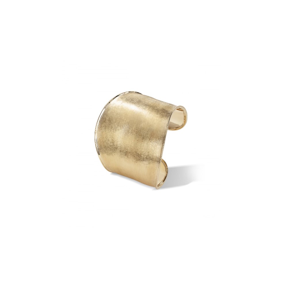 Versione più grande del bracciale rigido in oro giallo 18kt, inciso a mano con l’antica tecnica del bulino millerighe. Questo iconico gioiello dai volumi unici e dalle forme eleganti, è stato progettato per adattarsi perfettamente al polso.