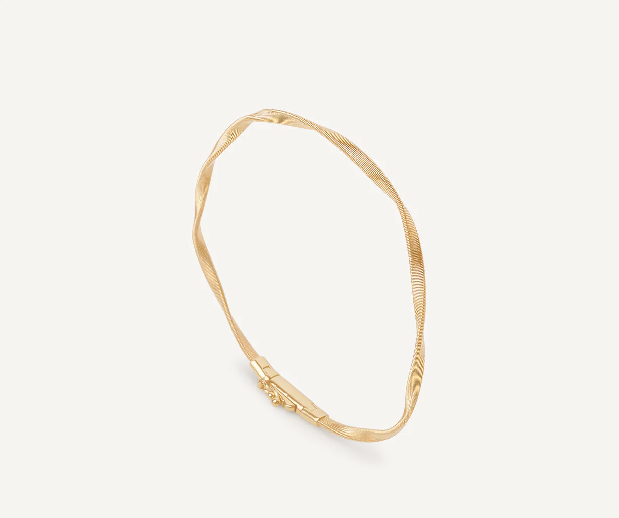 Un elegante bracciale semi-rigido in oro giallo 18kt in filo di spirale ritorta, realizzata grazie all’esclusiva lavorazione artigianale del coil. Perfetto indossato da solo, stupendo abbinato agli altri bracciali della collezione. Essenziale nella sua raffinatezza.