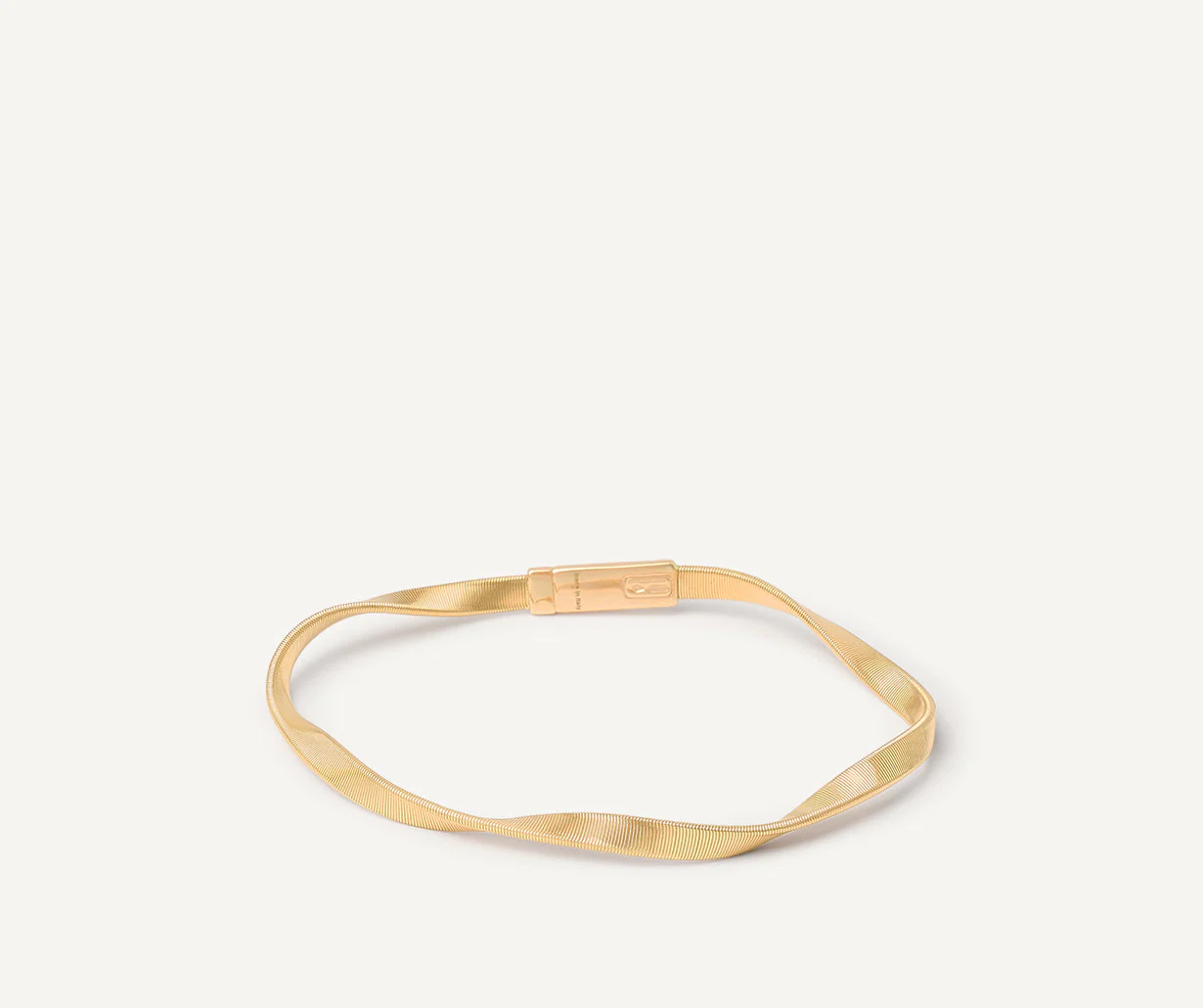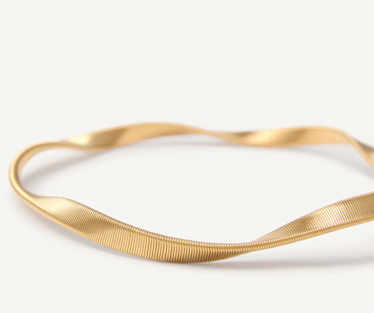 Un filo d’oro giallo 18kt, nella versione bold della spirale ritorta, realizzata grazie all’esclusiva lavorazione artigianale del coil. Un bracciale dal design sofisticato, perfetto se indossato da solo, superbo se abbinato agli altri gioielli Marco Bicego.