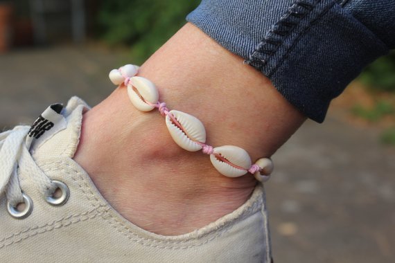 Cavigliera realizzata con vere conchiglie di Ciprea e cordino regolabile