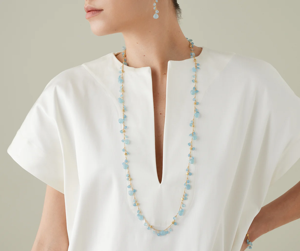 Sautoir in oro giallo con acquamarina