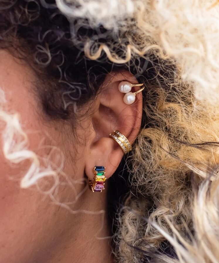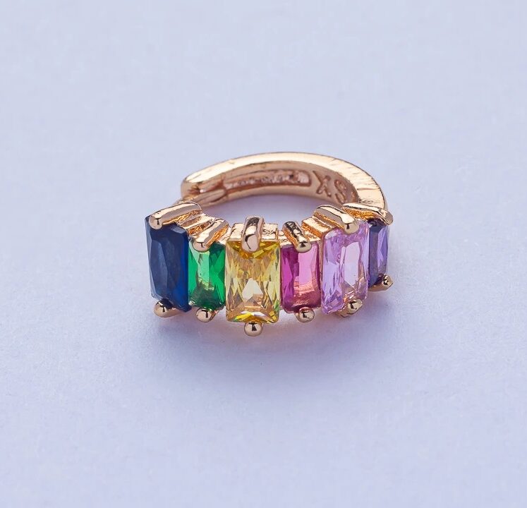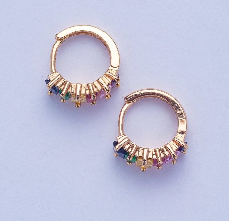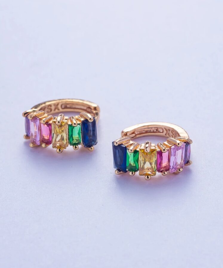 Paio di orecchini in lega di rame bagnata realizzati con zirconia rainbow