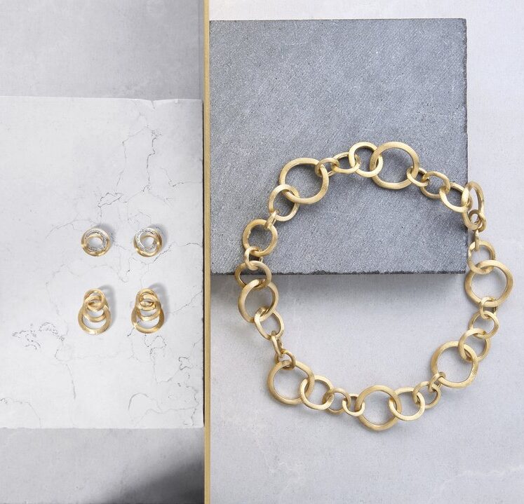 Tre Link incastrati tra loro in un elegante intreccio irregolare. Questo orecchino, in oro giallo 18kt, è inciso a mano con l’antica tecnica del Bulino Millerighe.