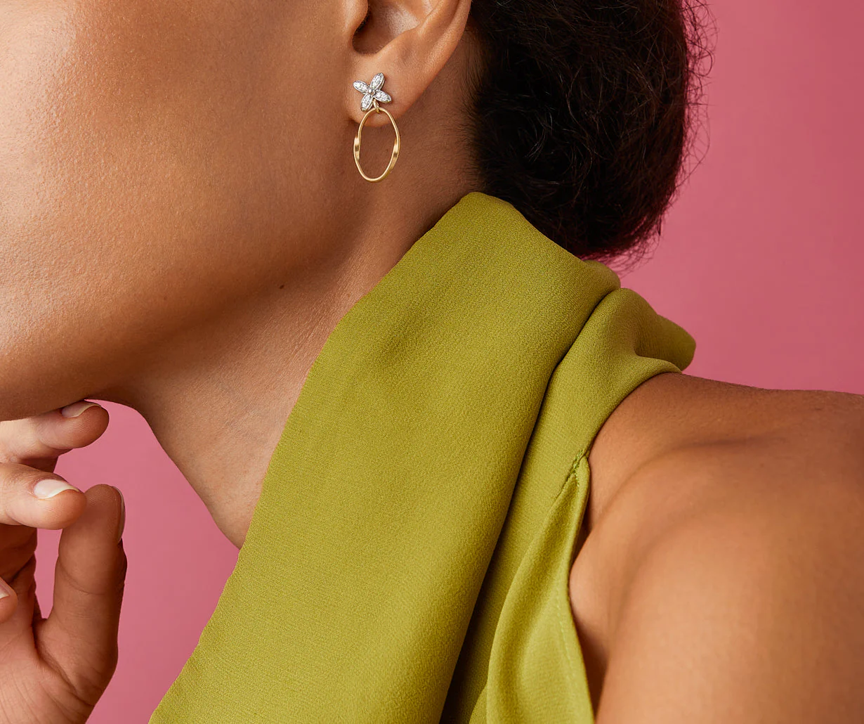 Orecchino con elementi floreali in pavé di diamanti