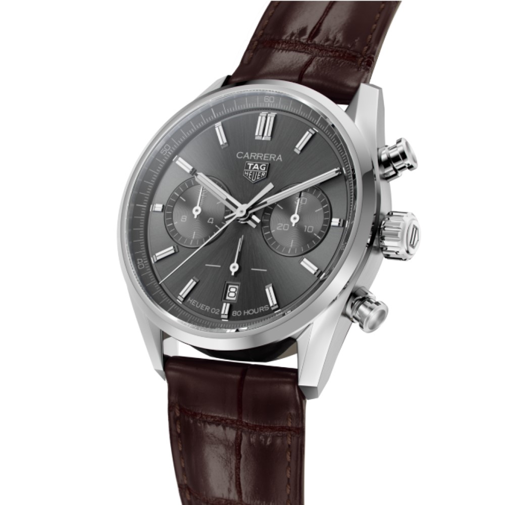 Un cronografo prestigioso con cassa di 42 mm in acciaio e quadrante color antracite spazzolato effetto soleil. Dotato di molteplici funzioni cronografiche di precisione, simboleggia il connubio fra eleganza e precisione cronometrica.
