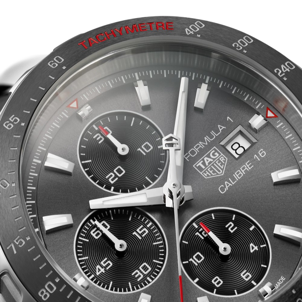 Un cronografo sportivo automatico ad alte prestazioni in ceramica high-tech e acciaio inossidabile. Creato per gli amanti della velocità, il suo raffinato quadrante grigio presenta tocchi di rosso fuoco e dettagli in Super-LumiNova® per la massima leggibilità.