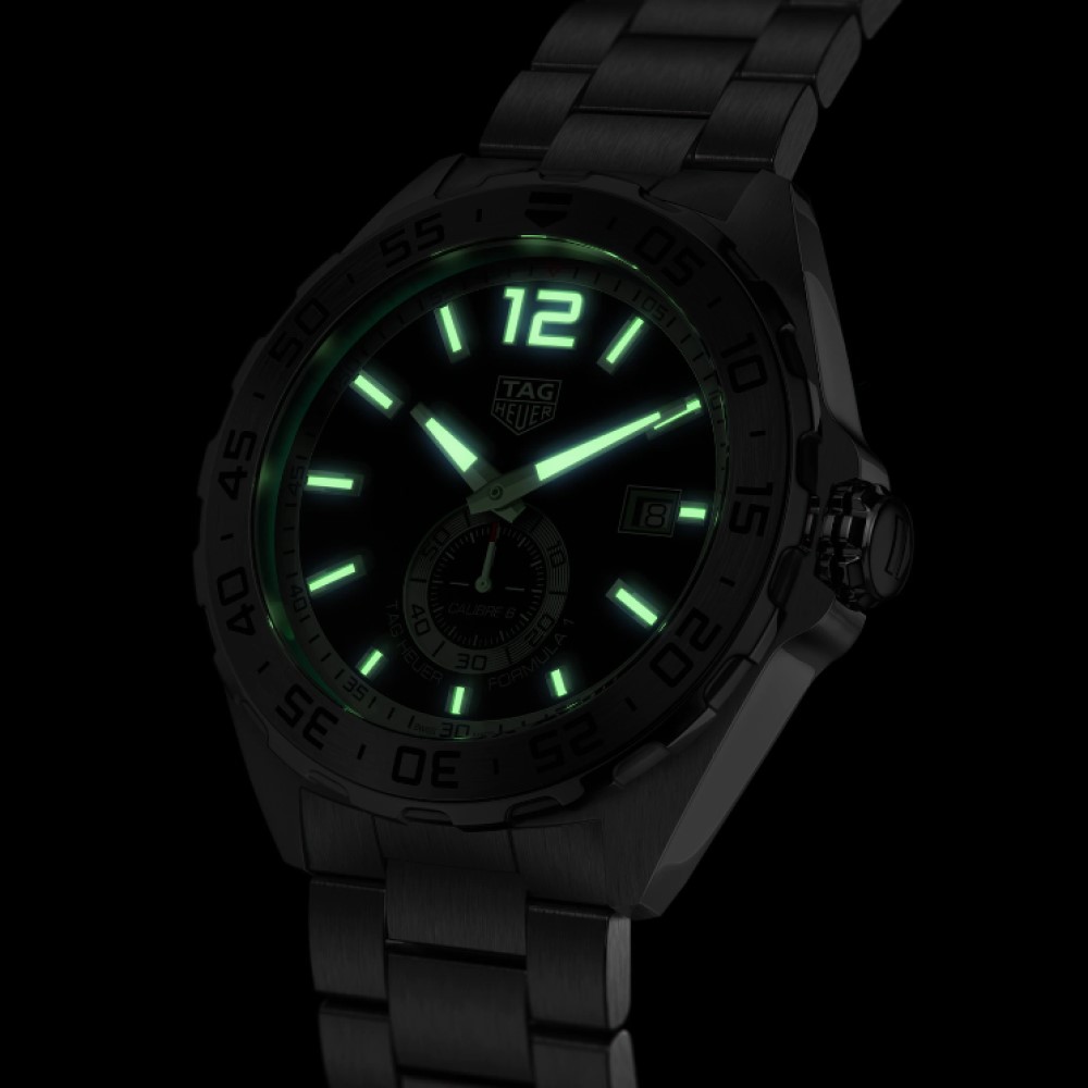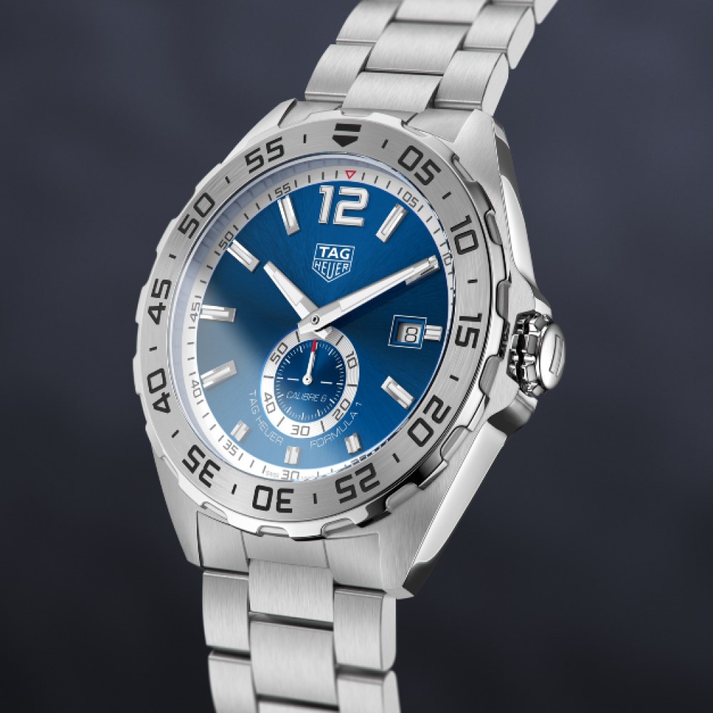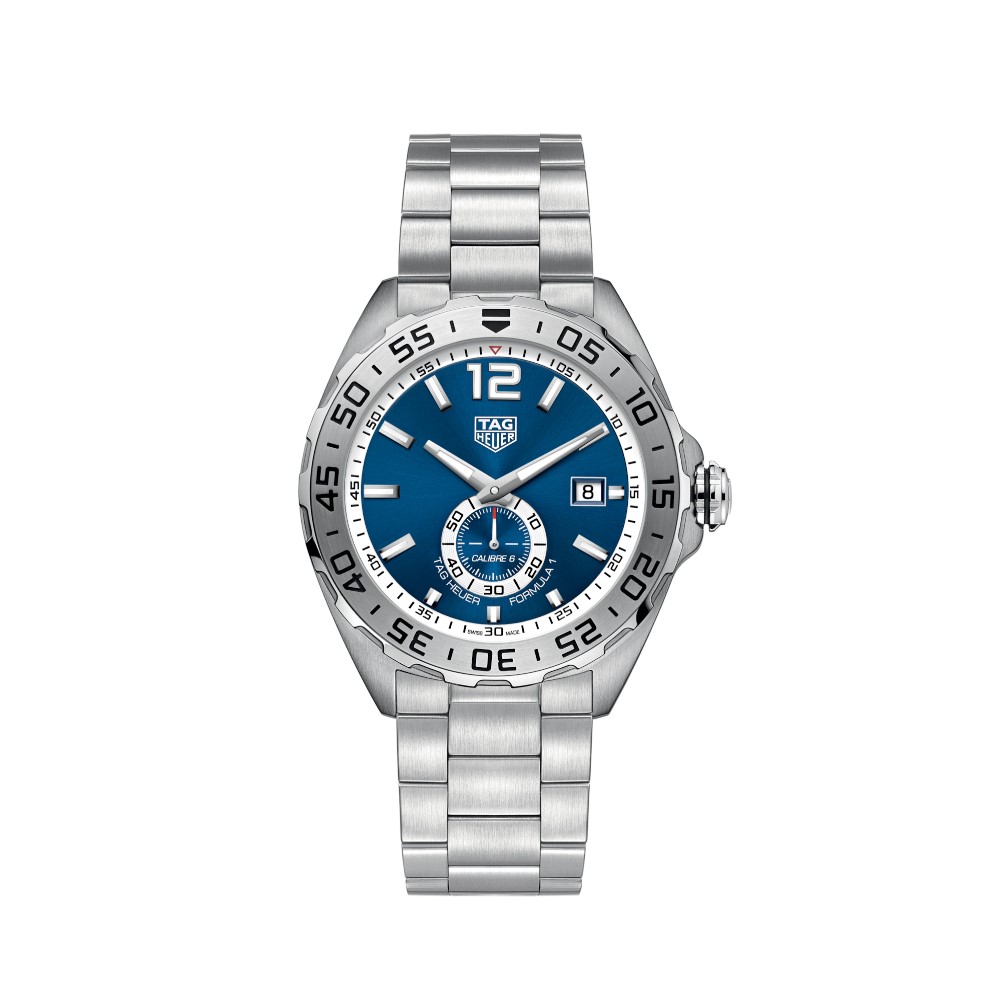 Un classico orologio sportivo con lunetta girevole unidirezionale con scala 60 minuti e indicatore dei secondi permanenti a ore 6. Animato dal solido movimento automatico Calibre 6, l’orologio presenta cassa da 43 mm e bracciale e fibbia pieghevole in acciaio inossidabile con finiture alternate.