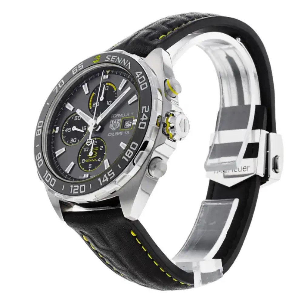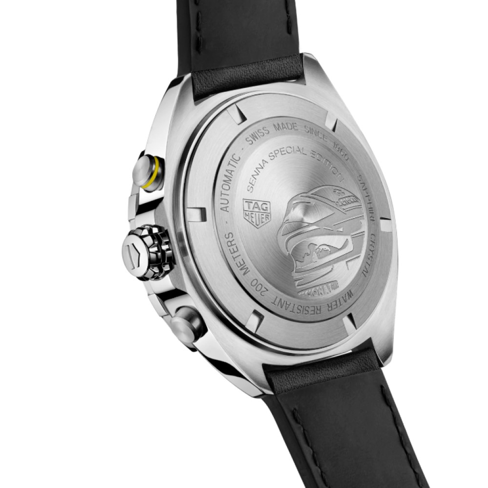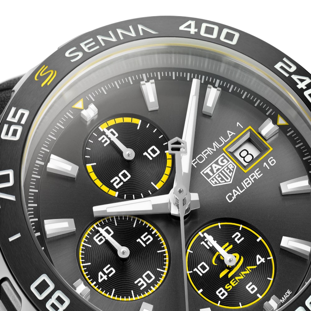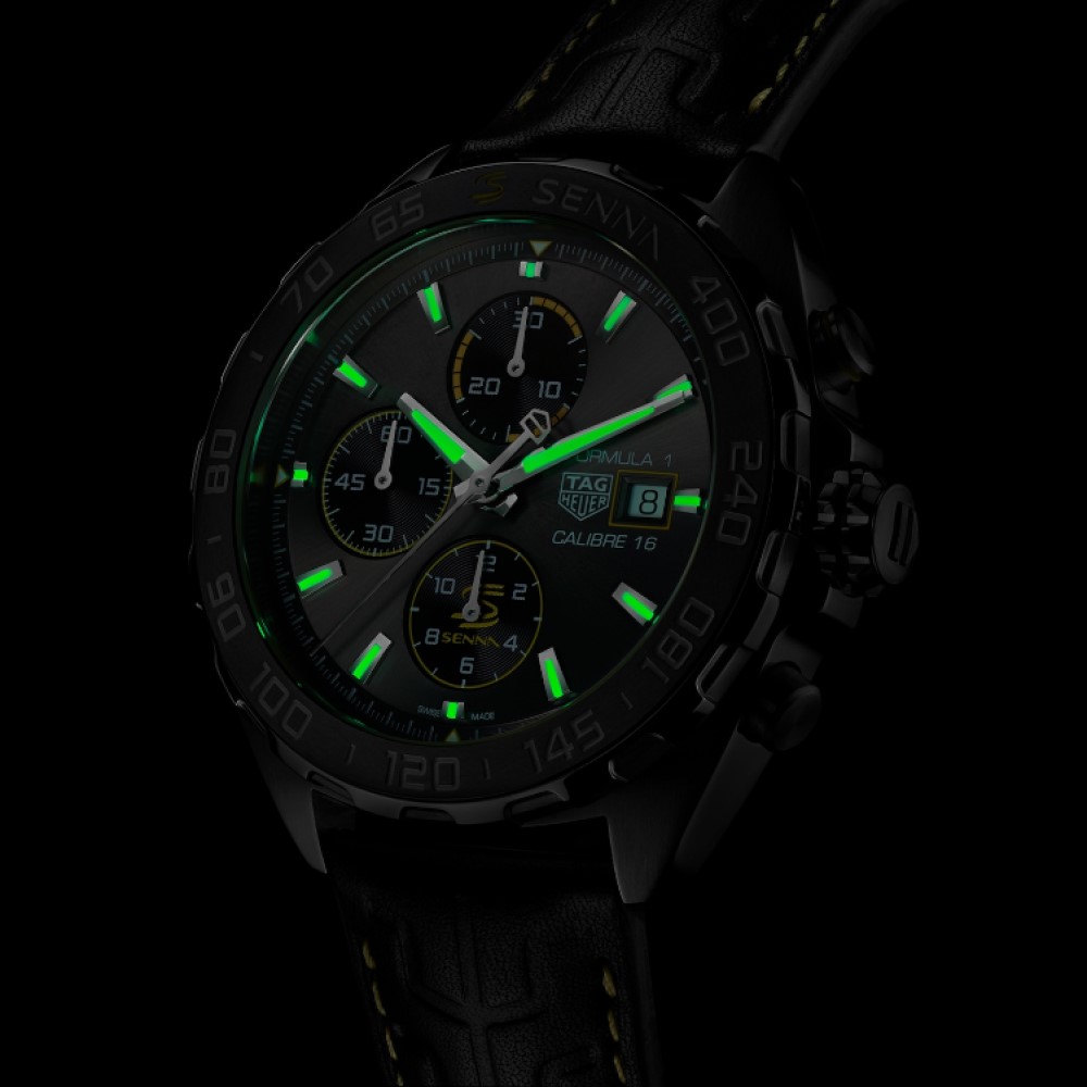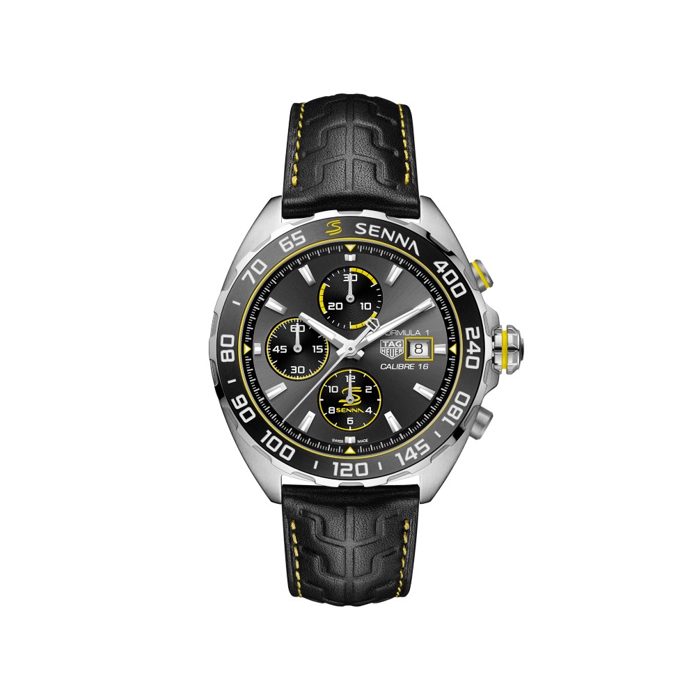 TAG Heuer Formula 1 x Senna Edizione Speciale da 44 mm animato dal Calibre 16 Automatico TAG Heuer. Questo cronografo rende omaggio al leggendario Ayrton Senna, ambasciatore TAG Heuer fin dal 1988, epoca in cui il pilota non aveva rivali nella Formula 1.