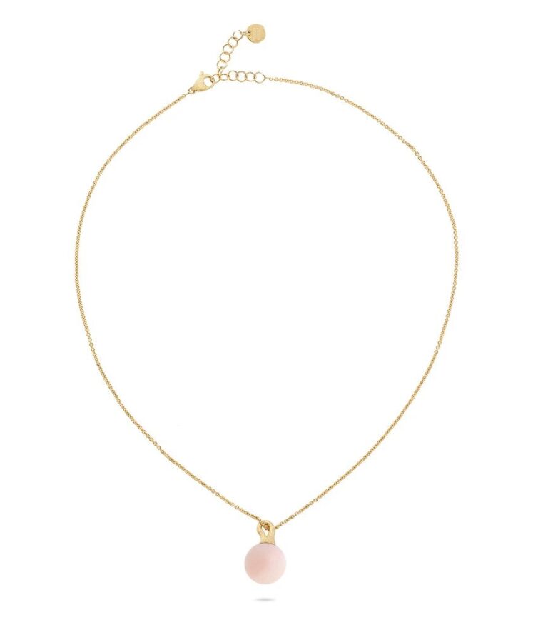 Dall’eleganza Pop, questo pendente in oro giallo 18kt e Opale Rosa naturale, si distingue per le delicate tonalità. La contromaglia, dal design sofisticato, è incisa a mano con l’antica tecnica del Bulino Millerighe. La catena regolabile, lo rende versatile e perfetto per ogni stile e fisionomia!