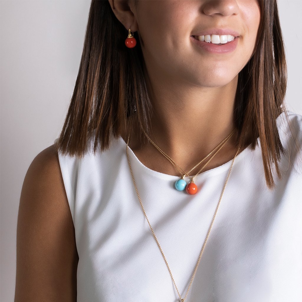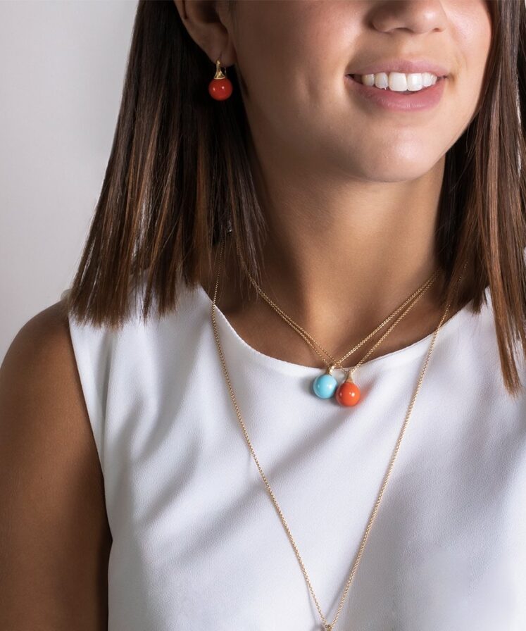 Dall’eleganza Pop, questo pendente in Turchese, si distingue per l’intenso colore Azzurro. La contromaglia, dal design sofisticato, è incisa a mano con l’antica tecnica del Bulino Millerighe. La catena regolabile, lo rende versatile e perfetto per ogni stile e fisionomia!
